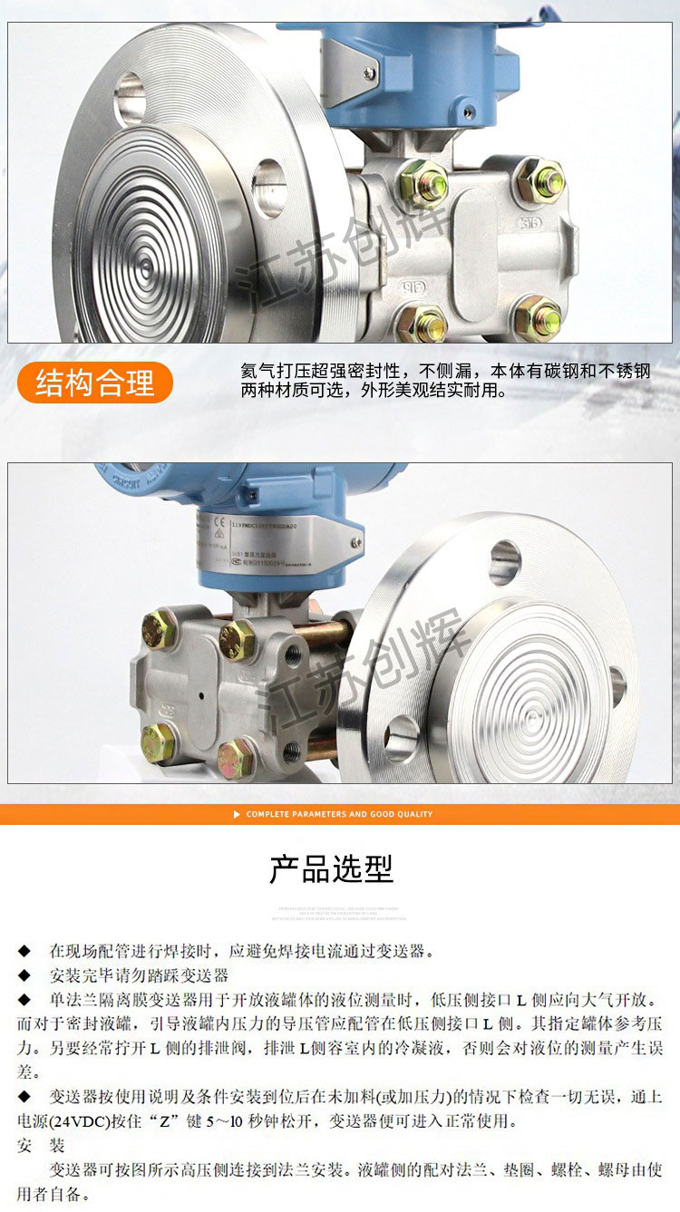 單法蘭差壓變送器采用全密封焊接結構 外形結構多樣化、采用耐高溫電路板 傳感器抗干擾強、長期穩(wěn)定性好、防雷擊、防射頻干擾、高精度、高穩(wěn)定性、316不銹鋼隔離膜片結構(或者鉭膜片)、多種量程選擇、用戶方便調(diào)試。